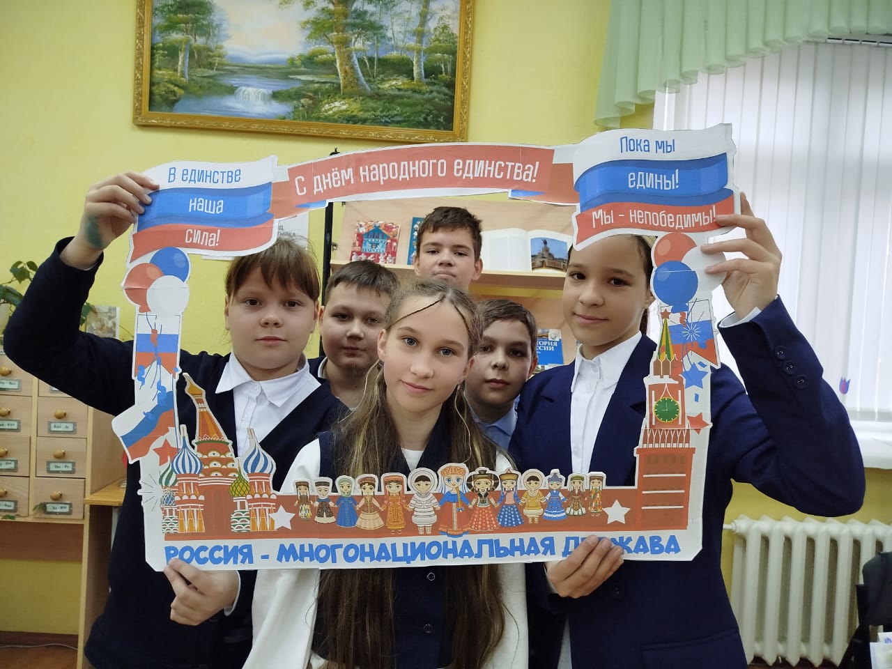 Советник директора Зарипова Э.И., учитель технологии Грачева Л.Ф., городская библиотека филиал №3 и активисты «Движения Первых» организовали для учащихся 5-го класса тематическое мероприятие, посвященное Дню народного единства. Ребята познакомились с историей праздника, значением единства народа и культурным разнообразием нашей страны. Проведенное мероприятие способствовало формированию чувства патриотизма и уважительного отношения к традициям разных народов России. Оно позволило школьникам осознать важность сплоченности и взаимопонимания в обществе. Дети продемонстрировали свою творческую активность, создав коллаж из ладошек, на которых они выразили свои мысли и желания относительно того, что такое единство. Завершилось мероприятие посещением тематической выставки в библиотеке.