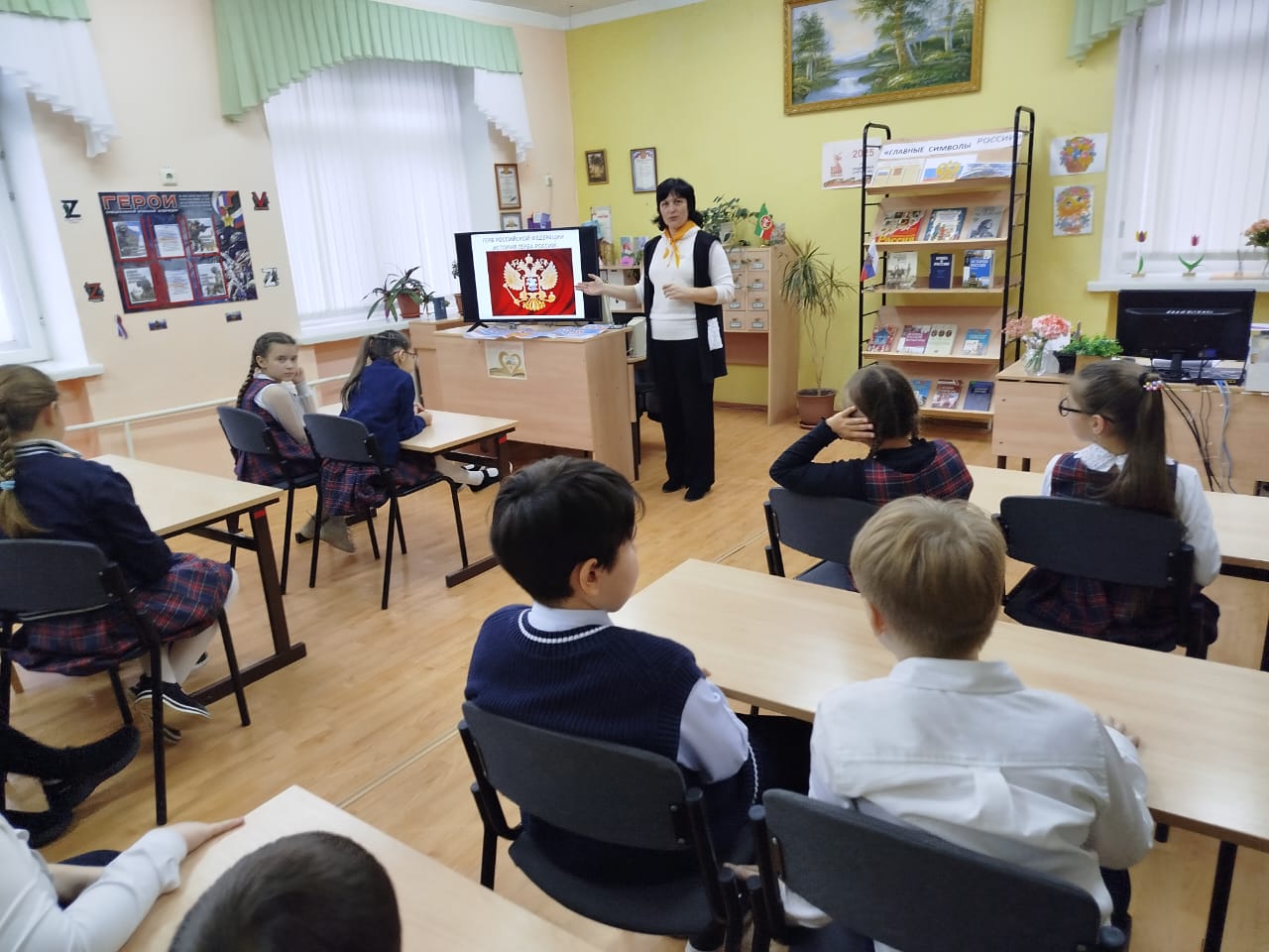 Вамках Недели начальных классов учащиеся 3 класса посетили библиотечный час на тему: " История я государственного герба Российской Федерации", который прошёл л в школьной библиотеке. Обучающиеся познакомились с историей возникновения герба России, его значением в прошлой и современной жизни. Закрепили и обобщили знания о символах России - флаге, гимне, гербе. Приоритетной задачей классного часа ставилось воспитание патриотических чувств и любви к Родине, формирование уважительного отношения к государственным символам России, гордости за свою страну.
