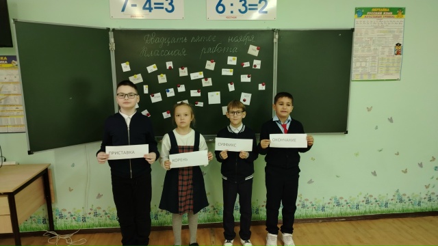 Вчера, 24 ноября состоялось открытие недели начальных классов торжественной линейкой. После торжественного открытия Недели дети познакомились с планом Недели. В этот же день во 2 классе прошёл открытый урок по русскому языку, по теме " Состав слова". На уроке дети вспомнили, из каких частей слов состоят слова, играли в дидактическую игру " Состав слова", отгадывали загадки. -