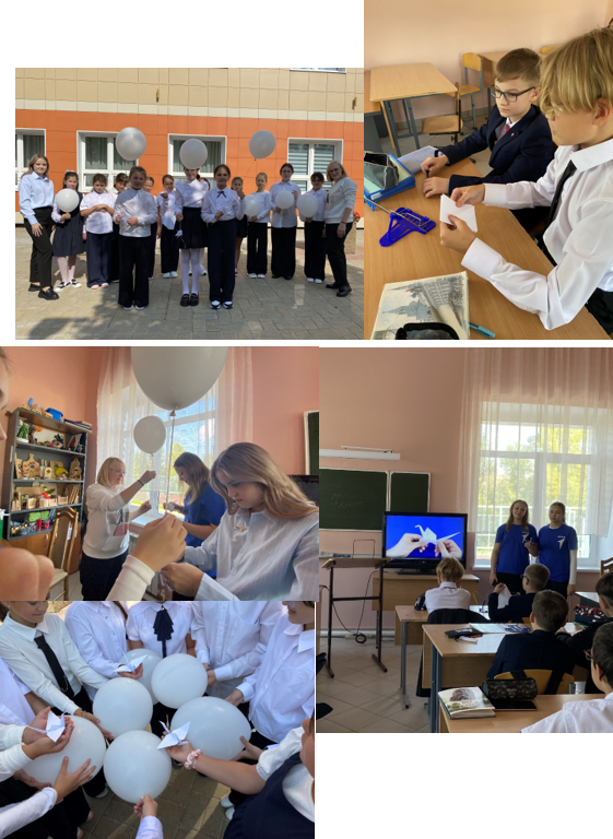 Именно поэтому в память погибшим, ребята мастерили бумажных журавликов, а после вышли на улицу и выпустили их в небо. С каждым журавликом отпускали в воздух по белому воздушному шарику – символ нашей надежды на светлое будущее без угроз терроризма.