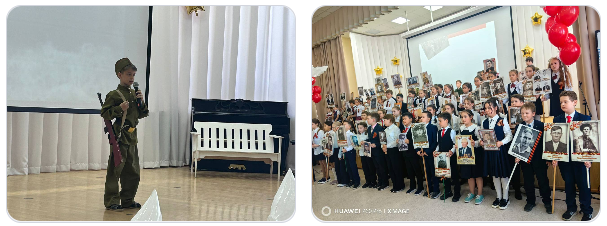 Кроме того, в концертную программу была включена акция «Бессмертный полк». Ученики принесли фотографии своих родственников — ветеранов Великой Отечественной войны.