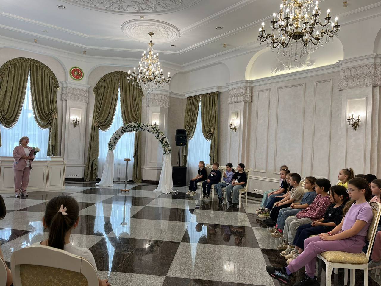 Сегодня часть ребят отправилась на экскурсию в библиотеку, где они узнали много нового. Другие дети посетили ЗАГС. Также к нам приходила муниципальный координатор советников директора по воспитанию, Шарапова Гузель Раисовна. Она увлекательно рассказывала детям о культуре татарского народа, его традициях и обычаях.