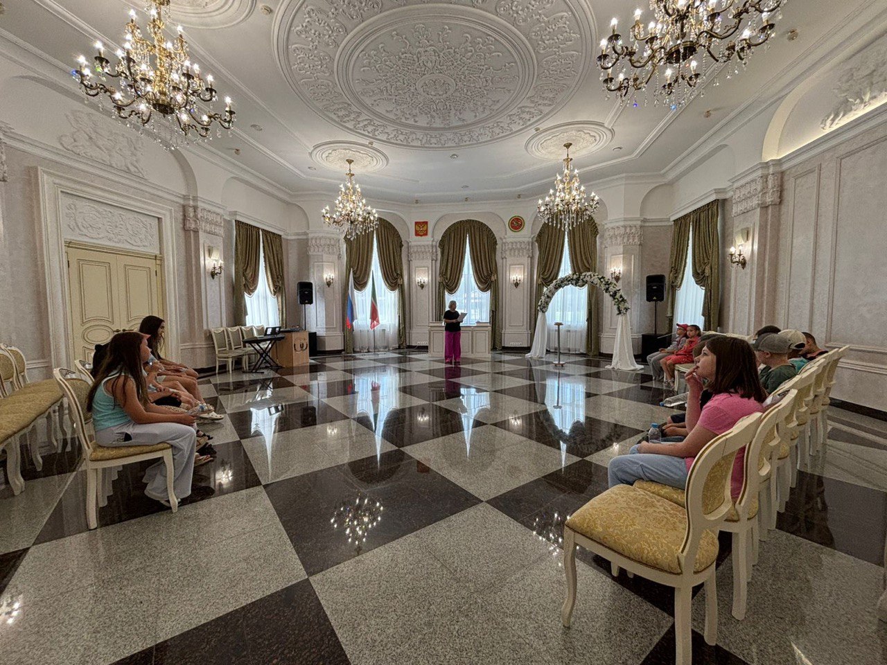 1-й отряд отправился на увлекательную экскурсию в городской ЗАГС. Ребята узнали много интересного о том, как работают сотрудники ЗАГСа, познакомились с традициями регистрации браков, а также историей дворца бракосочетания.