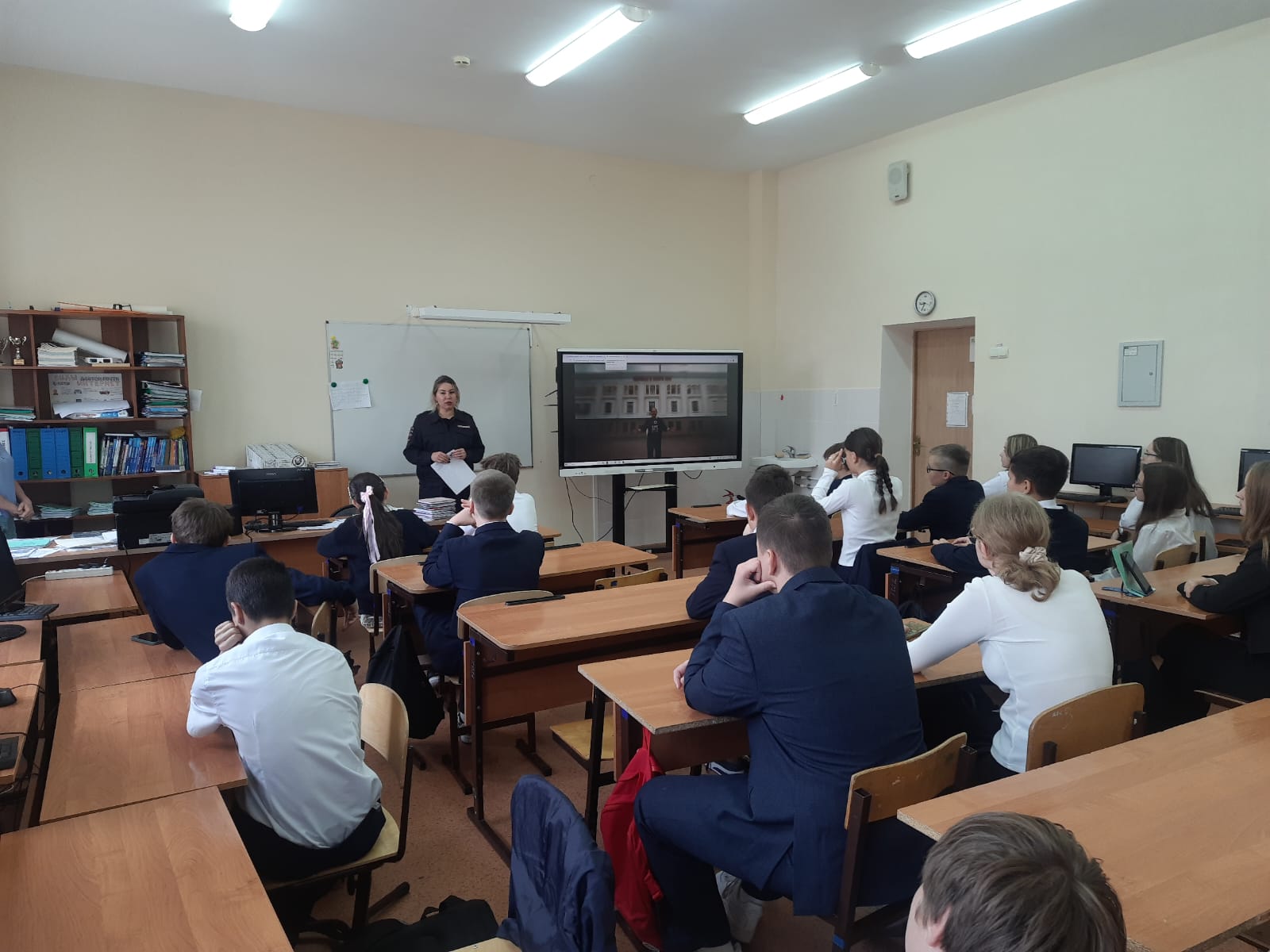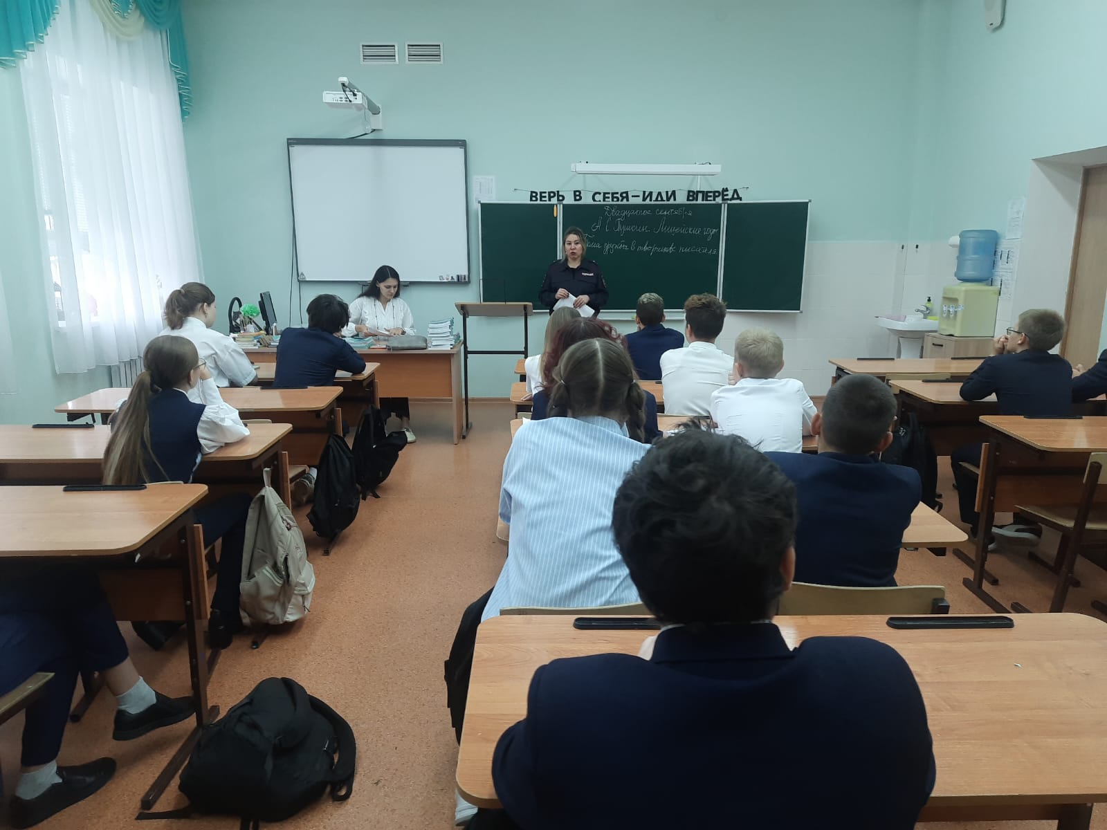 Опубликовано: 22.09.2025В рамках профилактической работы в школе прошла встреча учащихся 7 классов со старшим инспектором ОПДН Кадямовой Ю.Ф. Она напомнила ребятам об ответственности за правонарушения и преступления.