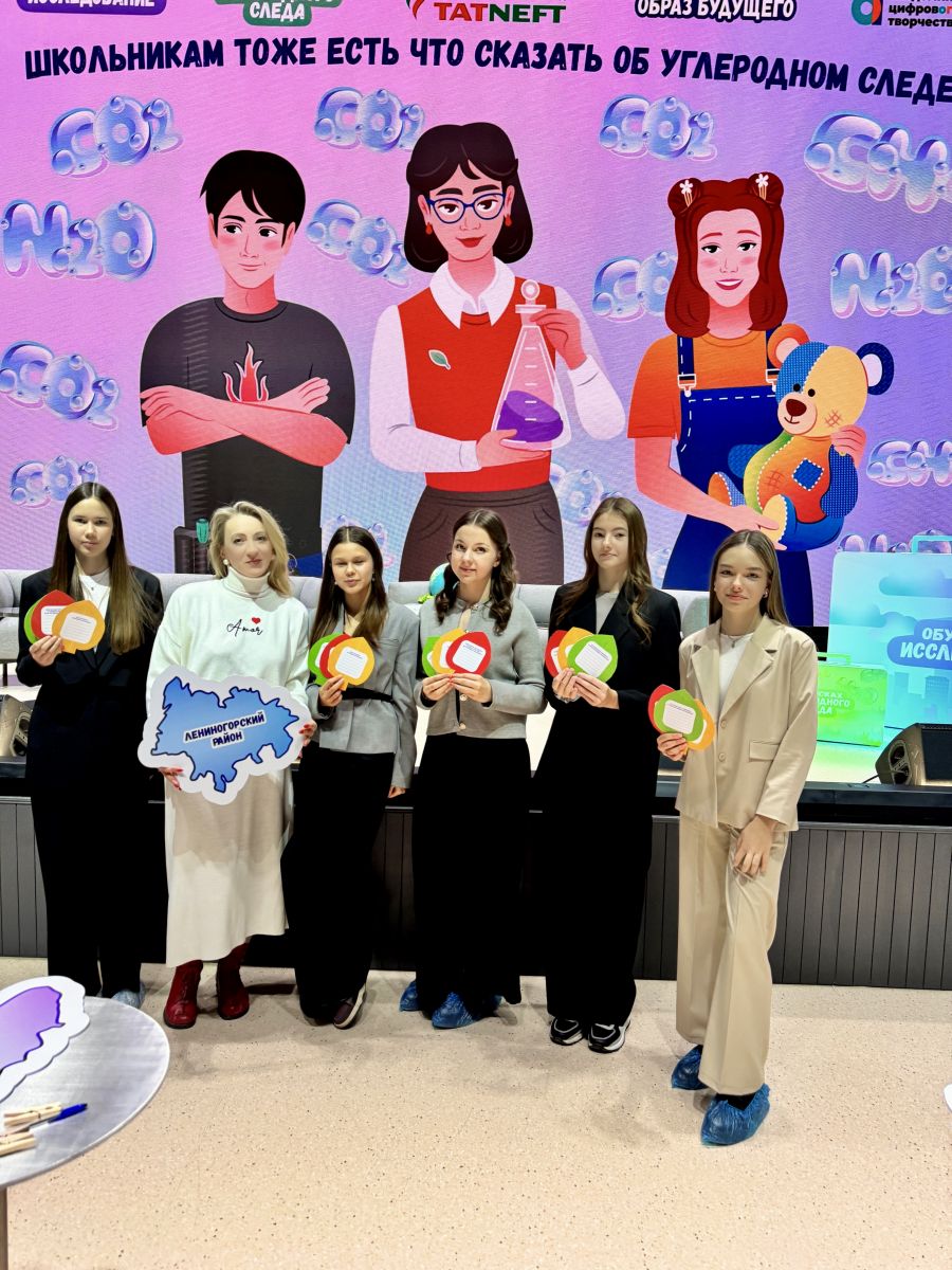 Опубликовано: 14.11.202513 ноября 2025 года в универсальном зале Альметьевского государственного технологического университета «Высшая школа нефти» (г. Альметьевск) прошла Итоговая конференция «Школьникам тоже есть, что сказать об углеродном следе» с очным участием 150 школьников, 30 учителей и методистов управлений образований. Наши звездочки из 8 Б класса представляли Лениногорский район.