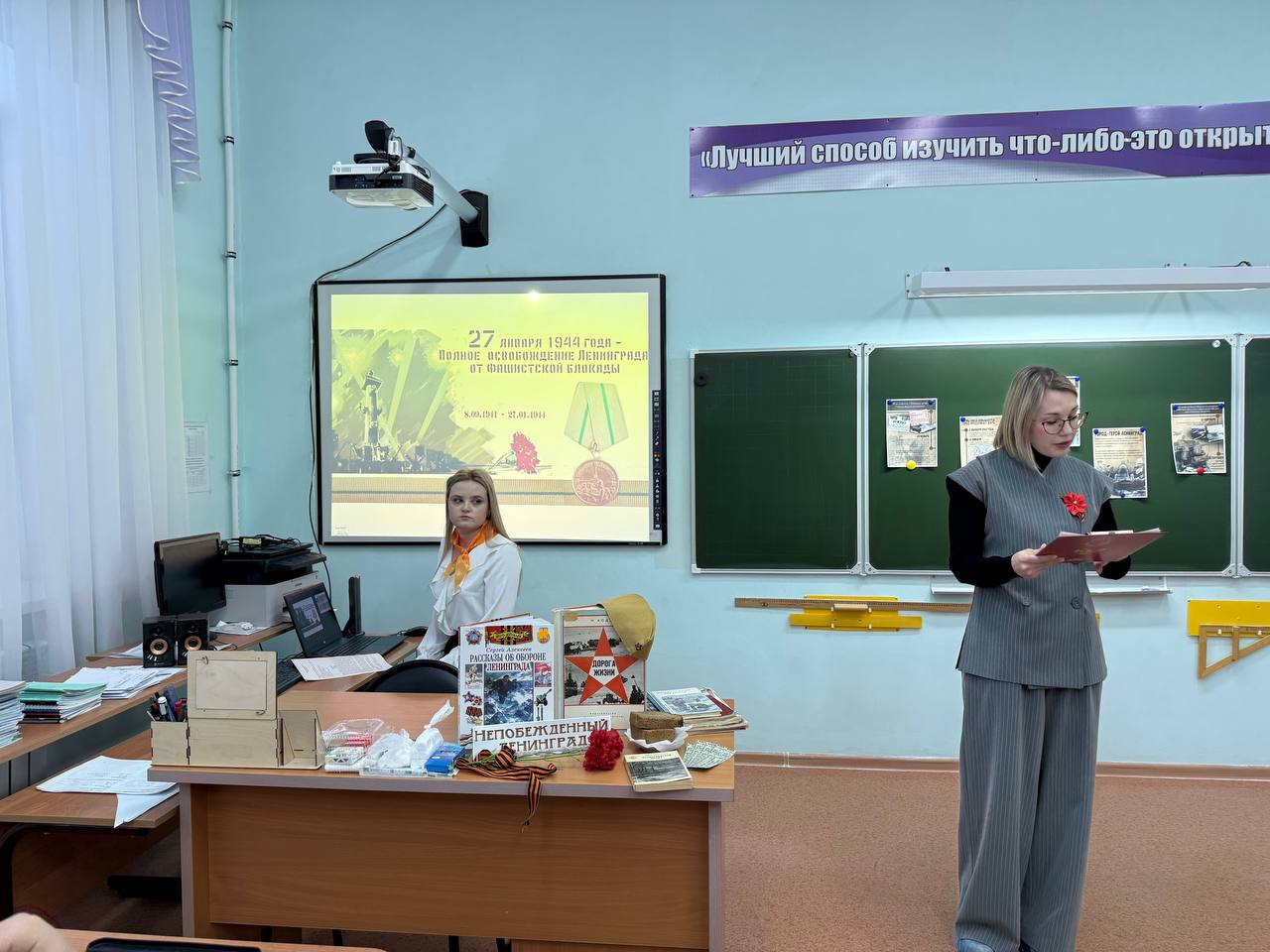 В нашей школе прошло памятное мероприятие, организованное совместно с детской библиотекой. Мы пригласили сотрудников библиотеки, чтобы вместе с ребятами вспомнить героические и трагические страницы Великой Отечественной войны.