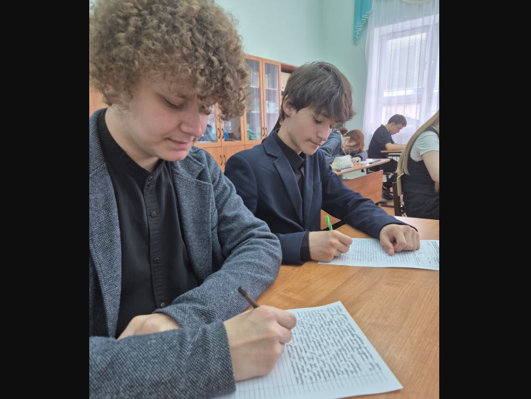 Активными участниками акции стали учащиеся 8-11 классов. В школе были организованы места для написания текста, диктующими являлись педагоги. Ребятам было предложено написать текст о детстве Александра Сергеевича Пушкина.