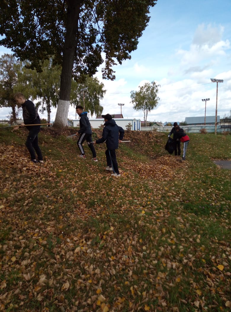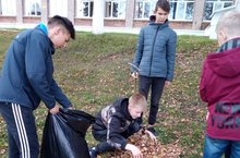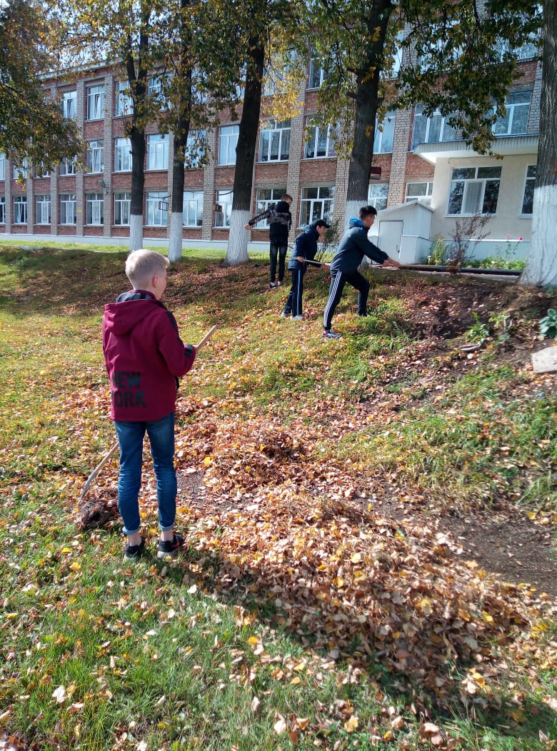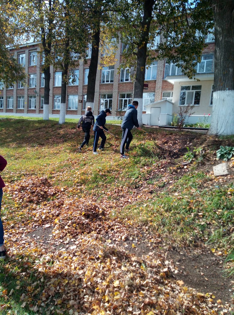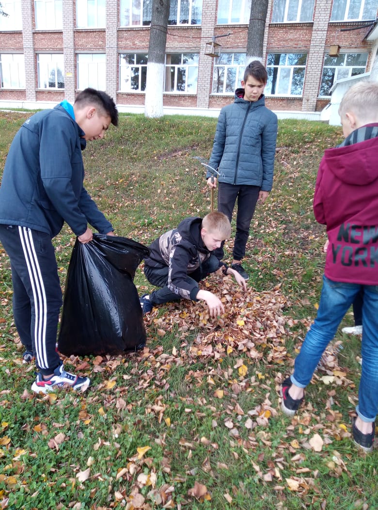 Каждый вторник учащиеся нашей школы выходят на уборку пришкольной территории. Сегодня ребята 8 класса собирали опавшую листву, крупный мусор.