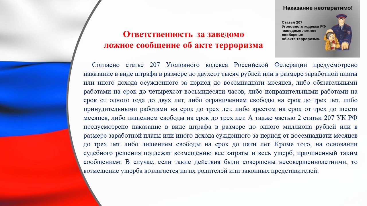 Ответсвенность за заведомо ложное сообщение об акте терроризма