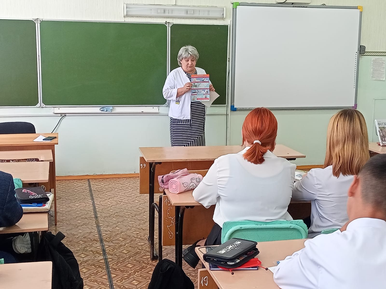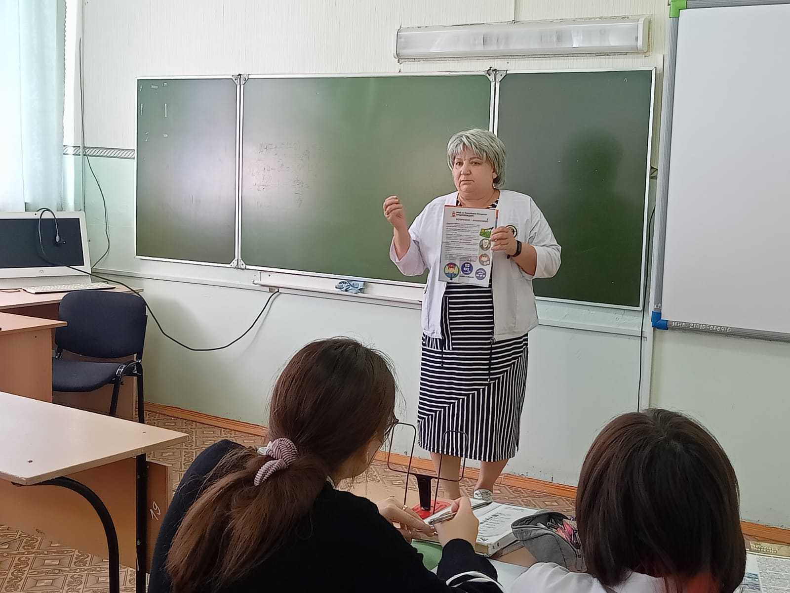 В рамках Месячника безопасности детей 5 сентября в школе прошел урок по основам безопасности жизнедеятельности. Для обучающихся 9 класса урок провела учитель ОБЗР Аминова Н.А.