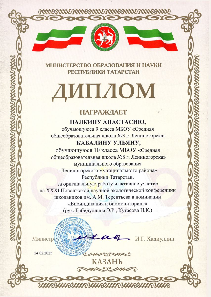Поздравляем лауреата XXXI Поволжской научной экологической конференций