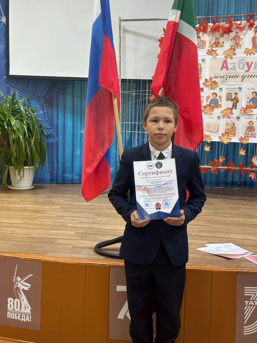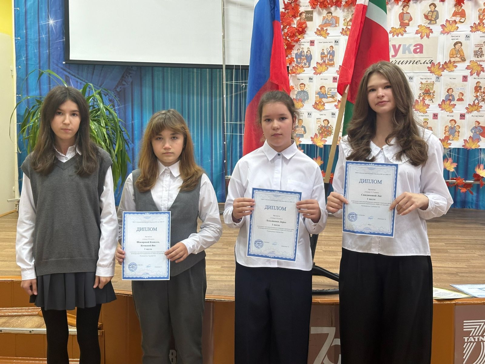 Поздравляем призеров школьного этапа Всероссийской и республиканской олимпиад школьников по истории Татарстана и татарского народа:Петрову Е., ученицу 10 класса, Панишеву А., ученицу 9 класса, Гумерова С., ученика 8 класса, Кондратьева Г., ученика 8 класса, Есипова М., ученика 8 класса,Илюхина К., ученика 8 класса (учитель Аюпова З.А.)