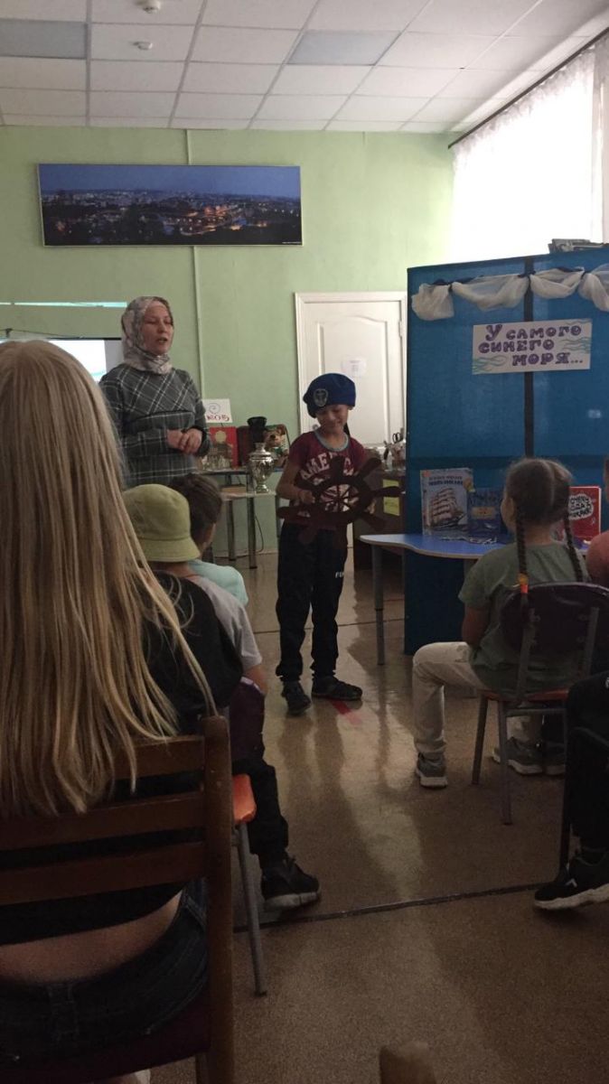 23 июля пришкольный лагерь «Солнышко» посетил детскую библиотеку,где ребят пригласили на увлекательную экскурсию «У самого синего моря».Ребята узнали о подводном царстве,познакомились с профессией водолаза.Возвратившись в лагерь ребята нарисовали рисунки на асфальте по теме «Море».