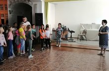 Сотрудники Дома Культуры пригласили на экскурсию воспитанников пришкольного лагеря. Ребята познакомились с различными профессиями, побывали в разных студиях, узнали как работает сцена, кинозалы.