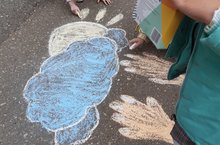 Класс нарисовал мелом на асфальте рисунки, а лучшие из них получили грамоты.