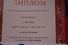 Поздравляем учащихся 1Б класса занявших 2 место в муниципальном конкурсе видеороликов,посвященных Дню матери! Руководитель: Валеева Р.М.Молодцы!!!