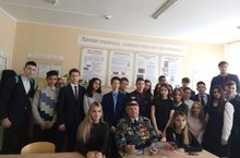 21 февраля в рамках недели истории и обществознания и празднования Дня защитника Отечества была организована и проведена встреча учащихся 9-11 классов с ветераном афганской войны- Трофимовым Владимиром Ивановичем (учитель Аюпова З.А.).В ходе мероприятия учащиеся получили достоверную информацию из уст легендарного бывшего военного летчика, почтили память героев-интернационалистов минутой молчания, еще раз актуализировали примеры исключительного героизма Алексанра Прохоренко и Романа Филипова. Мероприятие оставило глубокий след в сердце присутствующих и гостей.