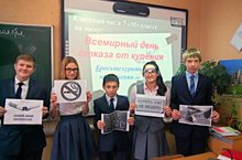 В 7 М классе классный руководитель Н.А. Салахова провела классный час, посвященный Международному дню отказа от табакокурения. Учащиеся на уроке узнали, что: в дыме табака содержится более 80 ядовитых веществ, организм быстрее стареет, курение приводит к хроническим воспалительным заболеваниям легких, у курильщиков чаще развивается язва желудка, псориаз, инсульт и инфаркт миокарда, курение опасно для будущего потомства, статистику «Сколько сигарет в день выкуривают россияне?» и т.д. В конце урока учащиеся пришли к выводу: МЫ ЗА ЗДОРОВЫЙ ОБРАЗ ЖИЗНИ!