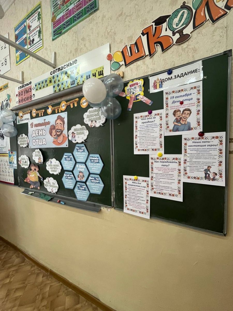 Активистами нашей школы организована выставка рисунков и плакатов, учеников начальный классов, ко дню Отца.