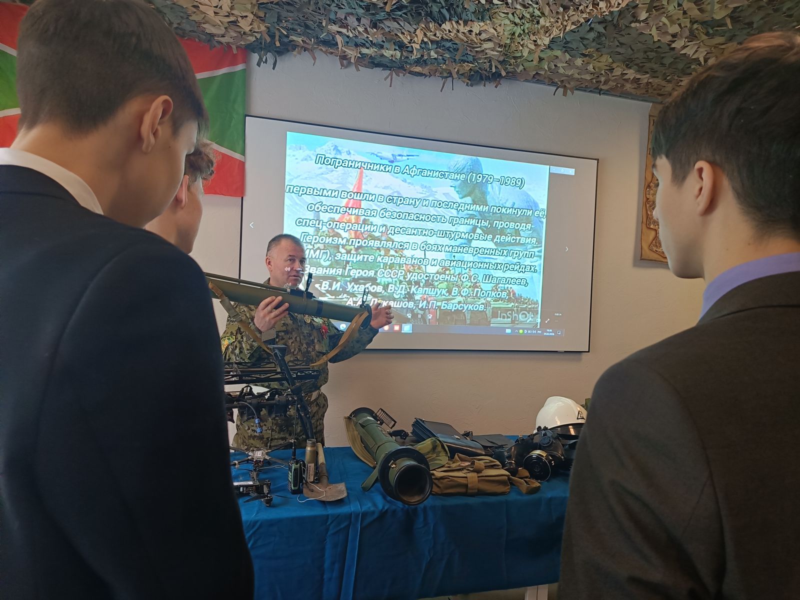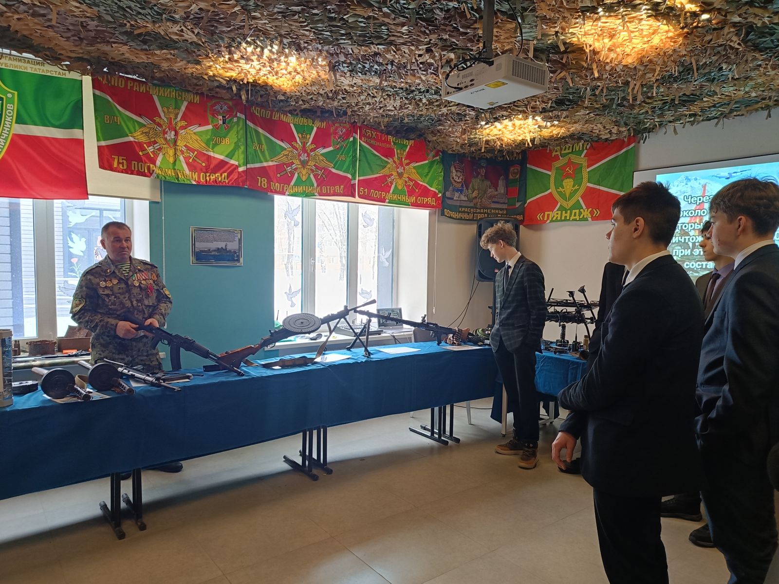 Опубликовано: 06.02.2026Учащиеся 9Б класса посетили мобильный музей-выставку "На защите границ", организованный на базе молодёжного центра "Высота". На выставке представлены экспонаты, демонстрирующие эволюцию оружия и иных используемых в военных действиях технических средств. Музеем охвачен период от Великой Отечественной войны до сегодняшних дней. Ребятам рассказали об истории пограничных войск, их вкладе в защиту Родины. Учащиеся также имели возможность узнать много нового об использовавшихся видах оружия и примерить элементы формы пограничников разных эпох. Подобные мероприятия положительно сказываются на расширении кругозора школьников и формировании гражданского сознания.