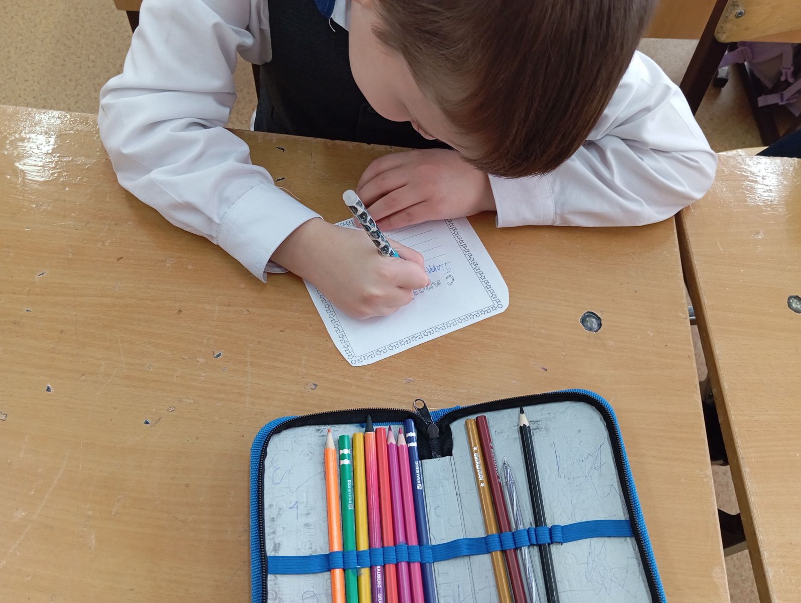 Ученики 1 "А" класса сделали открытки для военнослужащих, участвующих в специальной военной операции.
