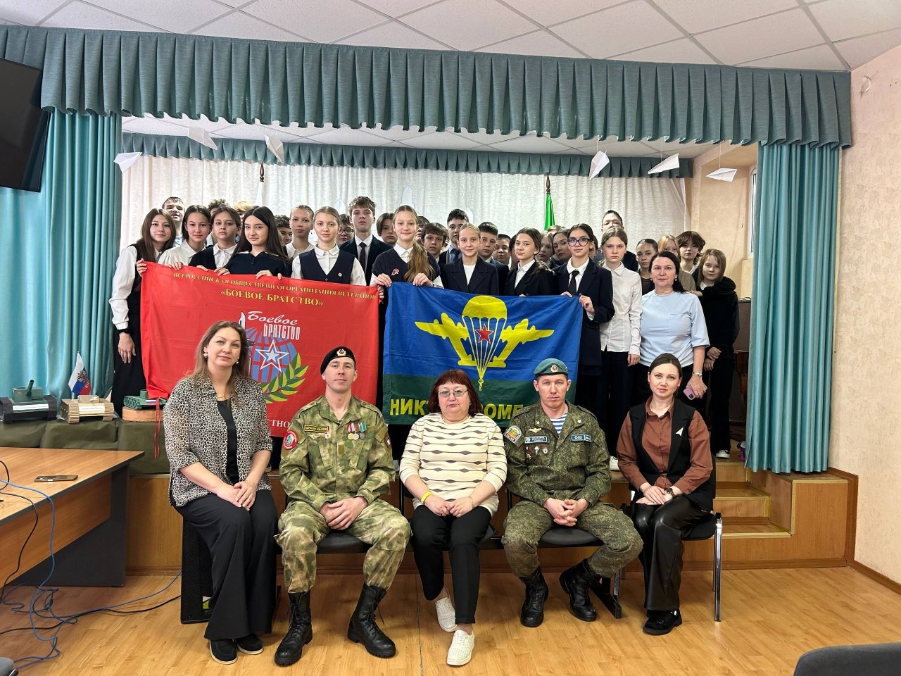 В рамках проведения мероприятий, приуроченных к месячнику гражданско-патриотического воспитания, перед ребятами выступили руководитель Лениногорского местного отделения Всероссийской общественной организации ветеранов «Боевое братство» Якупов А.А. и ветеран боевых действий Валиев А.Я. Они провели для учащихся организованный урок мужества, посвященный к годовщине вывода войск из Афганистана. Так же в преддверии памятной даты, советник директора по воспитанию провела с учащимися тематический классный час «Равнение на подвиг», в котором затронули такие понятия как, жизнь, достоинство, патриотизм, гражданственность,