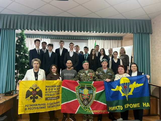 На нашем школьном мероприятие присутствовали гости - участники боевых действий Валиев Айдар Ядгарович,Сунюков Камиль Олмасович, близкие родственники выпускника школы, погибшего на СВО Шкарина Максима.