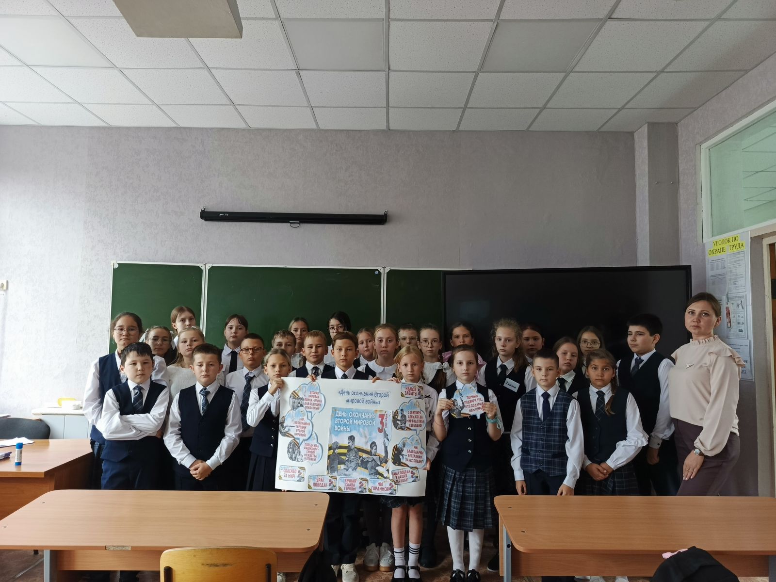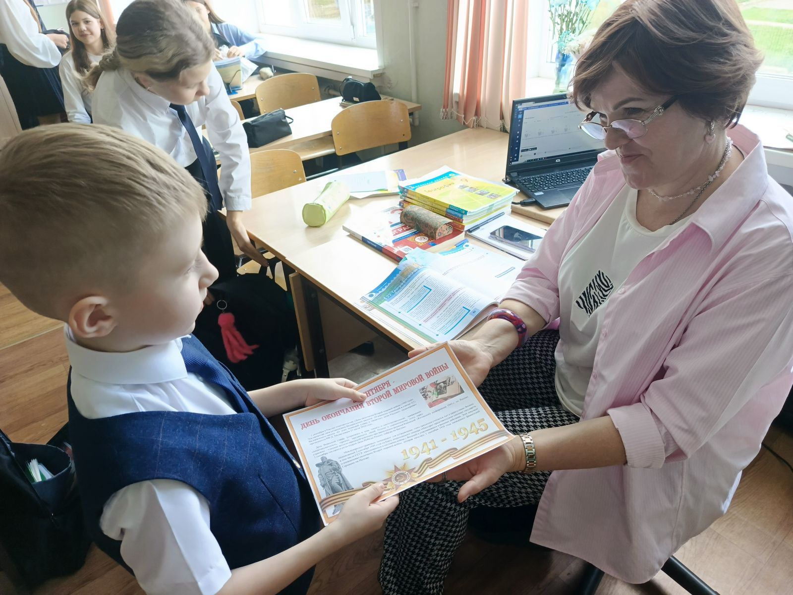Советник директора по воспитанию совместно с педагогами провела тематическое мероприятие. Провели беседы, учащиеся раздавали исторические памятки и изготовили плакат о Великой победе.