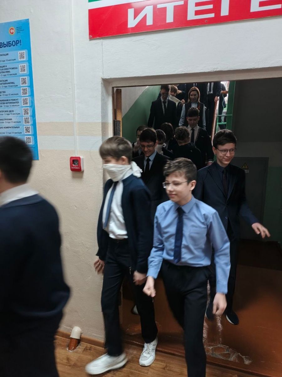 На основании приказа МКУ "Управления образования" ИКМО "Лениногорский муниципальный район" РТ "О проведении мероприятий по профилактике нарушений требований пожарной безопасности" в школе провели учебную эвакуацию по сценарию "Пожар в столовой".
