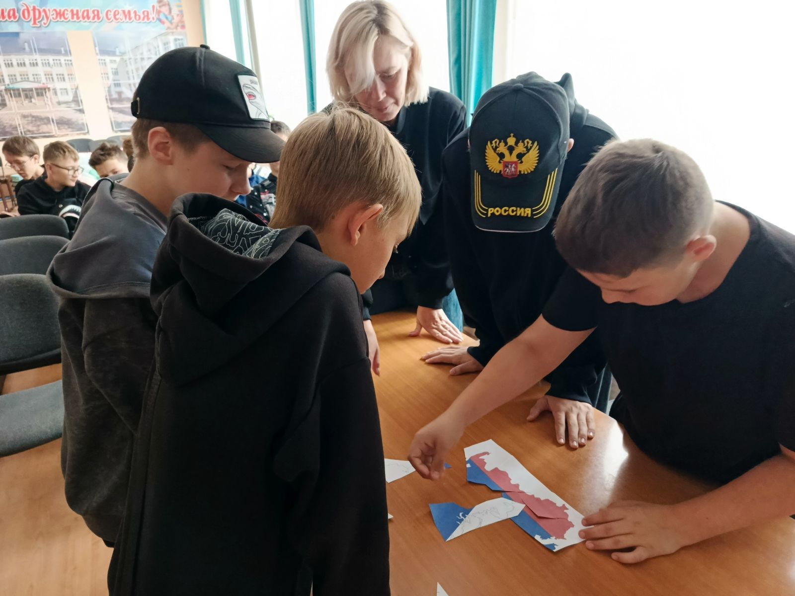 Советник директора по воспитанию в преддверии праздника организовала с учащимися мероприятия на котором они собирали пазлы, раздавали тематические памятки, обсуждали данную тему и поучаствовали в творческой мастерской «Цвети моя Россия».