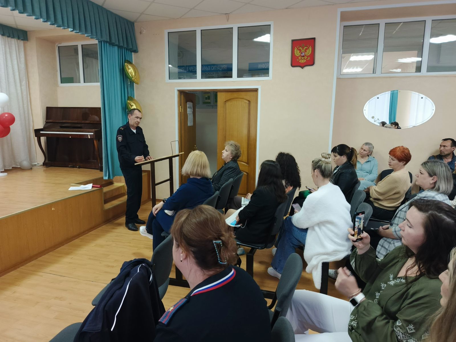 22.05.2025г. в нашей школе состоялось общешкольное родительское собрание для обучающихся 8-11 классов. На собрании присутствовали заместитель начальника полиции подполковника полиции Кадиров А.А., начальник отделения госавтоинспекции г.Лениногорска Никитина Е. А. Елена Александровна довела до сведений родителей информацию по питбайкам: со скольки лет можно ездить, нужны ли права, как выбрать питбайк. В конце выступления Никитина Е.А. продемонстрировала видеоролики, привела статистику по ПДД в нашем районе. В своем выступлении Кадиров А.А. напомнил родителям о время пребывания учащихся в летний период, мошенничестве.