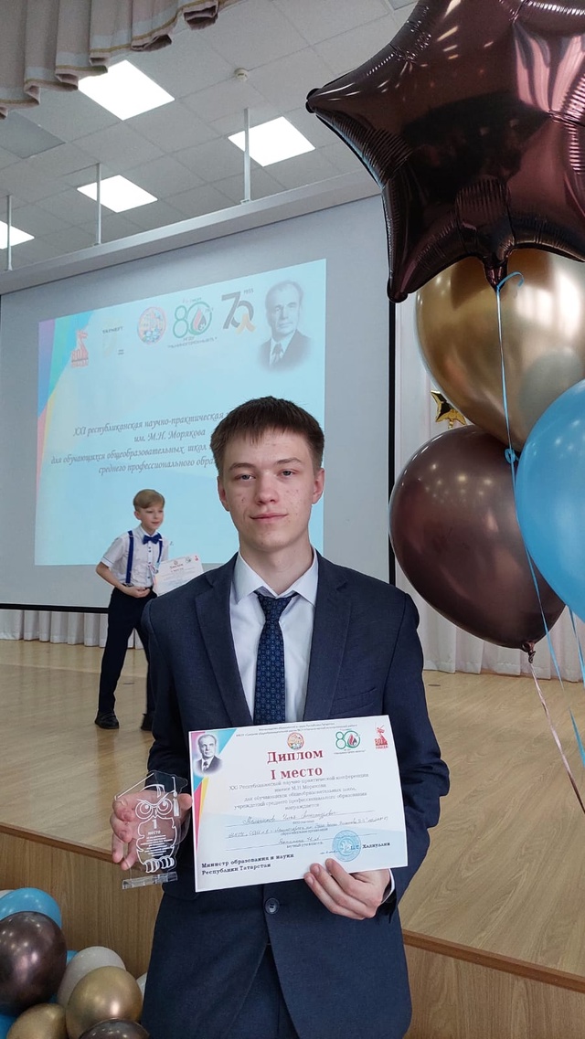18 апреля в школе #2 состоялась XXI республиканская научно-практическая конференция им.Н. М. Морякова. Мельников Илья, ученик 11А класса, успешно выступил с результатами своего исследования в области физики и занял 1 место! Поздравляем Илью и учителя физики Наталью Александровну с отличным результатом!