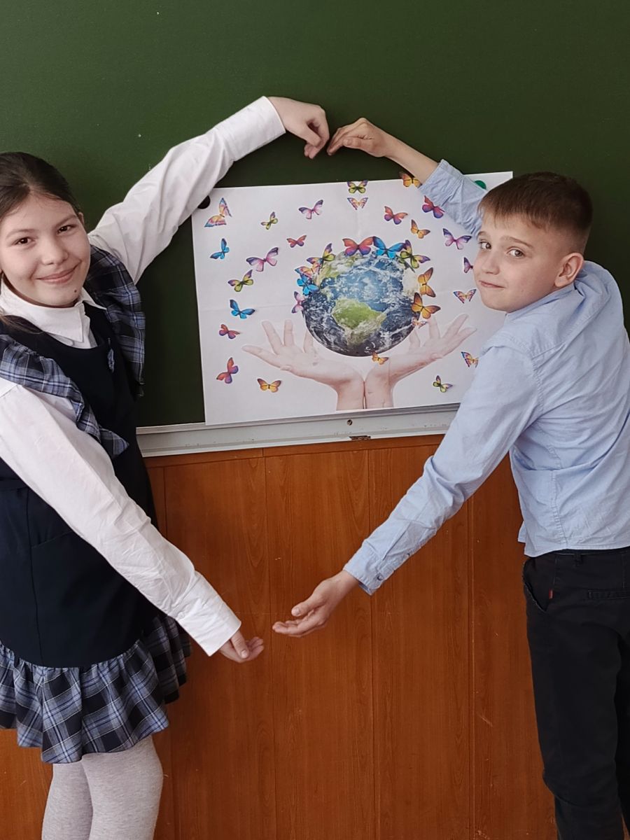 Наша школа тоже не остается равнодушной к данному мероприятию. В преддверии праздника советник директора по воспитанию совместно с педагогами провела акцию «Береги природу!», учащиеся активно приняли участие в сборе батареек, макулатуры и ПЭТ. Советник провела тематические мероприятия, познакомила с историей праздника. Обучающиеся узнали, что символом Дня Земли является Колокол мира, который символизирует дружбу, братство и солидарность народов нашей планеты. Далее изготовили аппликацию «Наш яркий мир!»