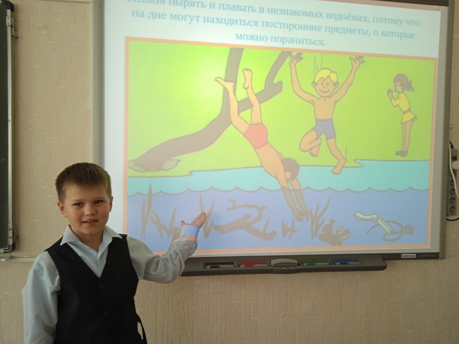 Перед летними каникулами на уроках окружающего мира ребята 2а класса повторили правила безопасного поведения на воде, пляжах, водных объектах. Рассказали, что главное правило - не ходить на пляж, на водоемы без взрослых. Очень важно то, что нельзя купаться в не оборудованных местах, диких пляжах с неисследованным дном, где могут быть опасные предметы. Все дети хотят научиться плавать, но пока не все умеют. Поэтому время на водоемах проводить надо под присмотром взрослых.