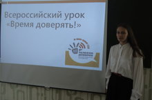 В рамках Всероссийской акции , напрвленной на повышение узнаваемости Детского телефона доверия 8-800-2000-122 среди детей и подростков, а так же в целях повышения уровня доверия к детскому телефону доверия, как к услуге экстренной психологической помощи, сегодня во всех классах нашей школы был проведен Всероссийский урок "Время доверять".
