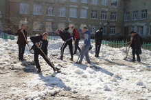 В рамках проведения экологического двухмесячника (единый санитарный день - вторник), сегодня ребята школы № 8 вышли на пришкольную территорию, для того чтобы раскидать залежавшийся снег.