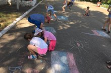Среди воспитанников лагеря был проведен конкурс рисунка на асфальте: «Я рисую Россию», целью которого было воспитание у воспитанников нравственно-патриотических чувств, формирование у ребенка любви к своей стране, к своему городу, своей семье