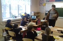 В 1-Б классе прошел классный час по теме «Веселая дорожная азбука». Дети просмотрели мультфильмы по безопасности дорожного движения, повторили правила поведения на дороге. Была проведена беседа на тему «Безопасный маршрут от дома до школы».