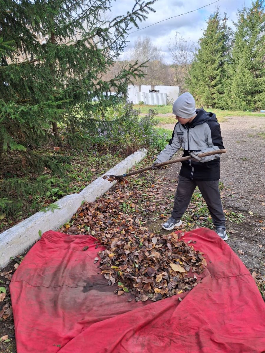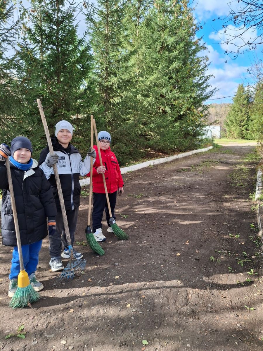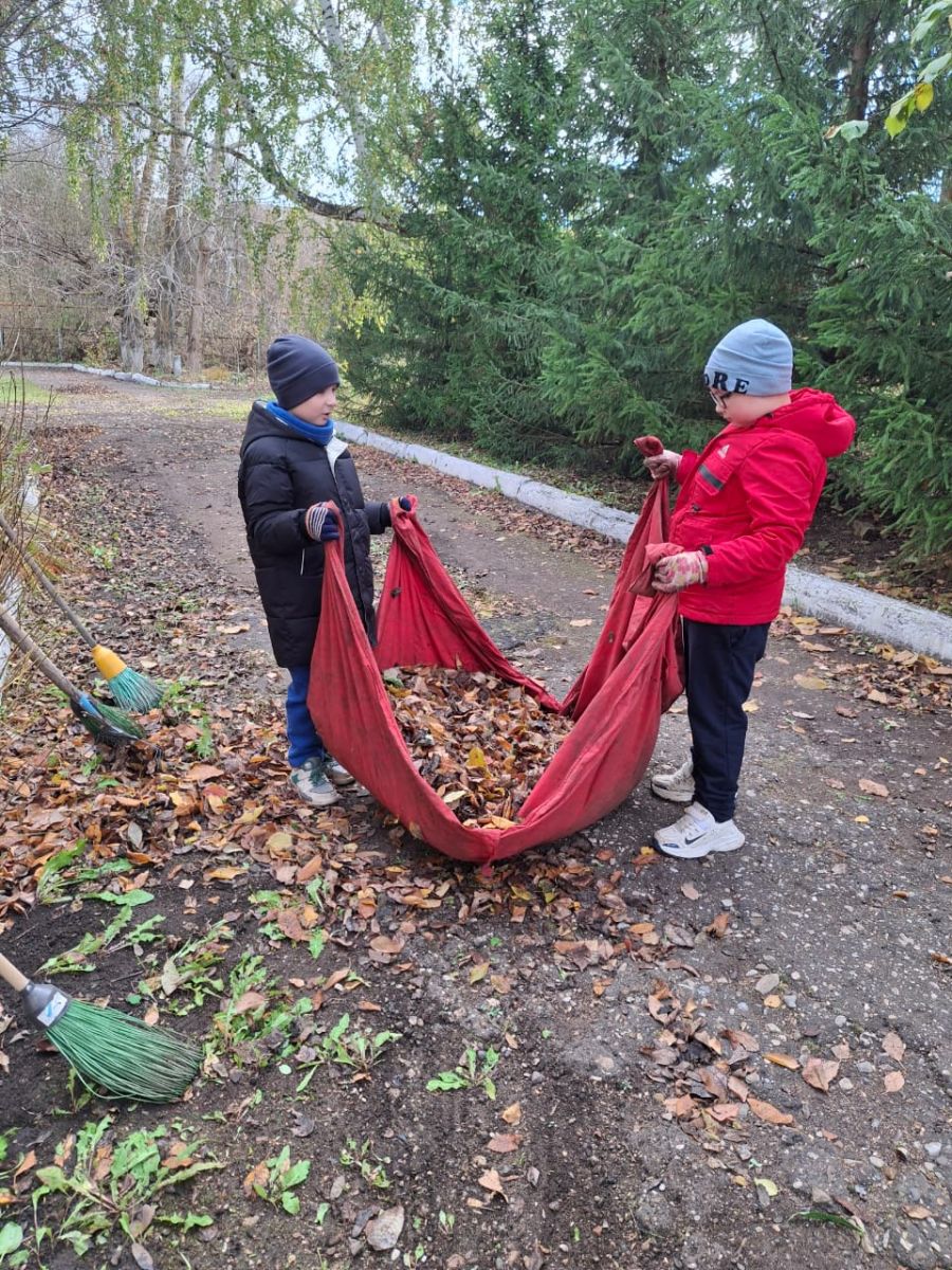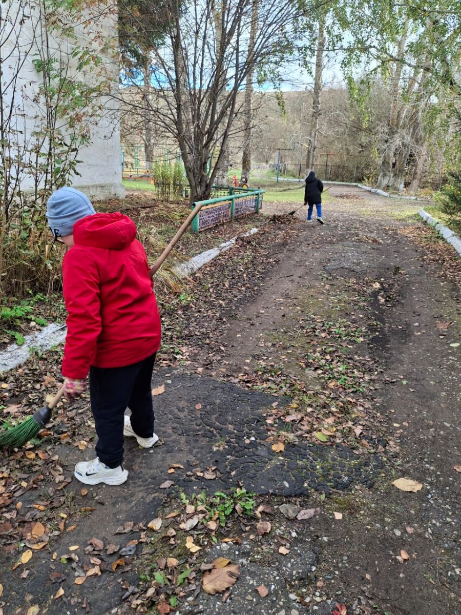Ребята дружно очистили школьный двор от мусора, листьев и веток, убрали старые листья и сухие ветки деревьев. Это позволило сделать территорию школы ещё привлекательнее и уютнее.