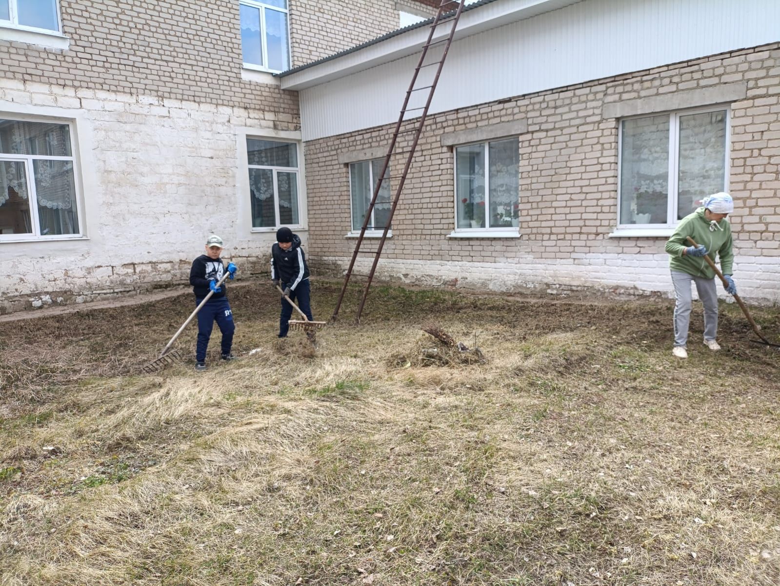 В школе прошёл весенний общешкольный субботник по уборке школьного двора и прилегающей территории.