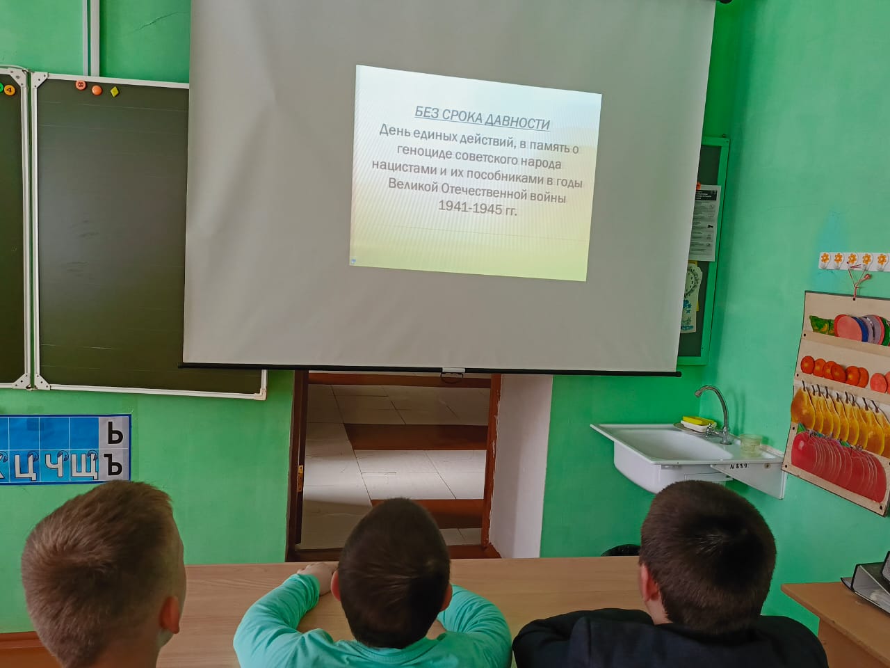 Учащиеся школы приняли участие на мероприятии, посвященное Дню единых действий в память о геноциде советского народа нацистами и их пособниками в годы Великой Отечественной войны.