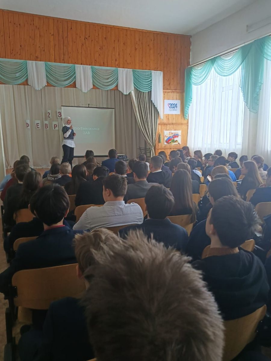 Опубликовано: 27.02.202527 февраля состоялось мероприятие, направленное на профилактику употребления психоактивных веществ (ПАВ) среди учащихся 7-11 классов. Выступала Давлетшина А.Р., педагог-психолог центра "Надежда". Она рассказала о вреде наркотиков, алкоголя и других веществ, влияющих на психическое здоровье человека.
