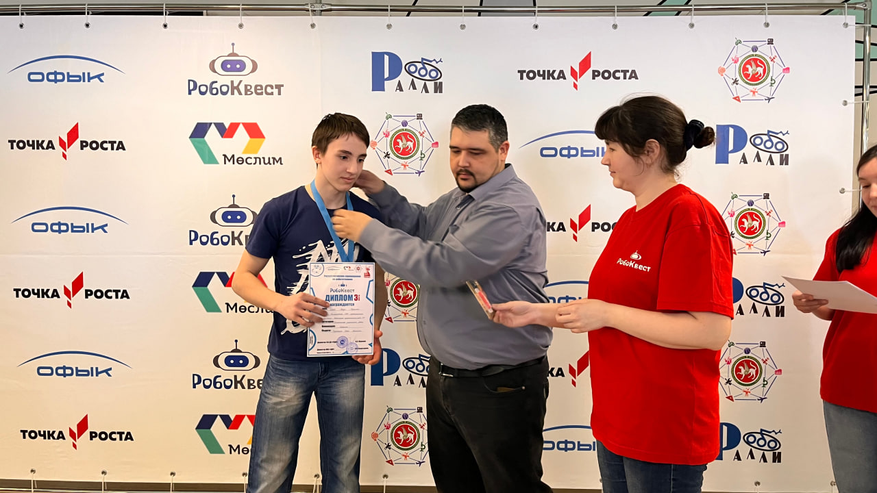 Опубликовано: 26.03.202520 марта в Муслюмове проходили Республиканские соревнования по робототехнике «РобоКвест». В конкурсе приняли участие 58 школьников из 9 районов Татарстана. По условиям квеста каждый участник создавал своего робота. Состязания проходили в шести номинациях: «Лабиринт», «Собери мячи», «Сумо роботов», «Шорт-трек», «Спринт», «Инверсная линия». В упорной борьбе, ребята из команды Тимяшевской школы Лениногорского района заняли призовые места в 3 номинациях: