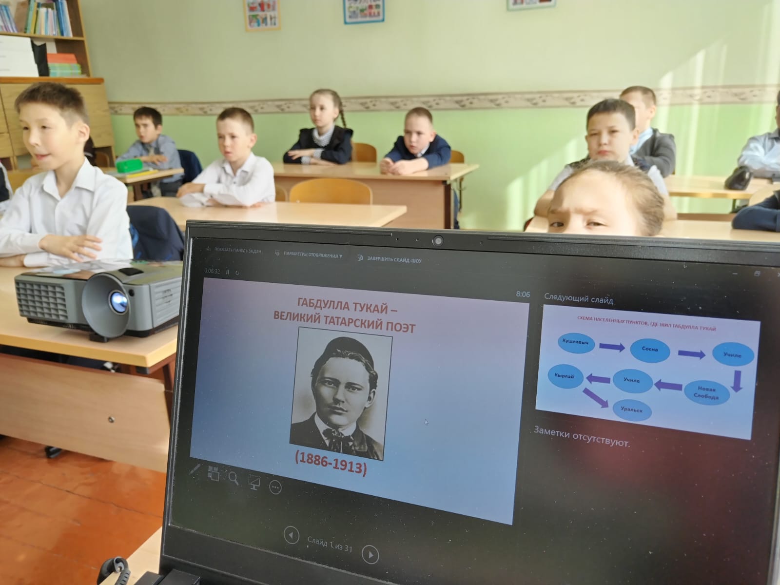 Опубликовано: 22.04.202522 апреля во 2 классе прошёл литературный час "Габдулла Тукай - великий татарский поэт". Мероприятие было направлено на расширение кругозора о жизни и творчестве поэта, воспитание любви к Родине, чувства любви к поэтическому слову, развитие интереса к творчеству писателей и поэтов Татарстана. В ходе мероприятия ребята познакомились с биографией поэта, совершили виртуальную экскурсию по местам, которые были связаны с жизнью Г.Тукая. Ребята увлечённо участвовали в мини-викторине по творчеству поэта. По традиции мероприятие закончилось исполнением песни "Родная речь" ("Туган тел") на слова великого поэта.