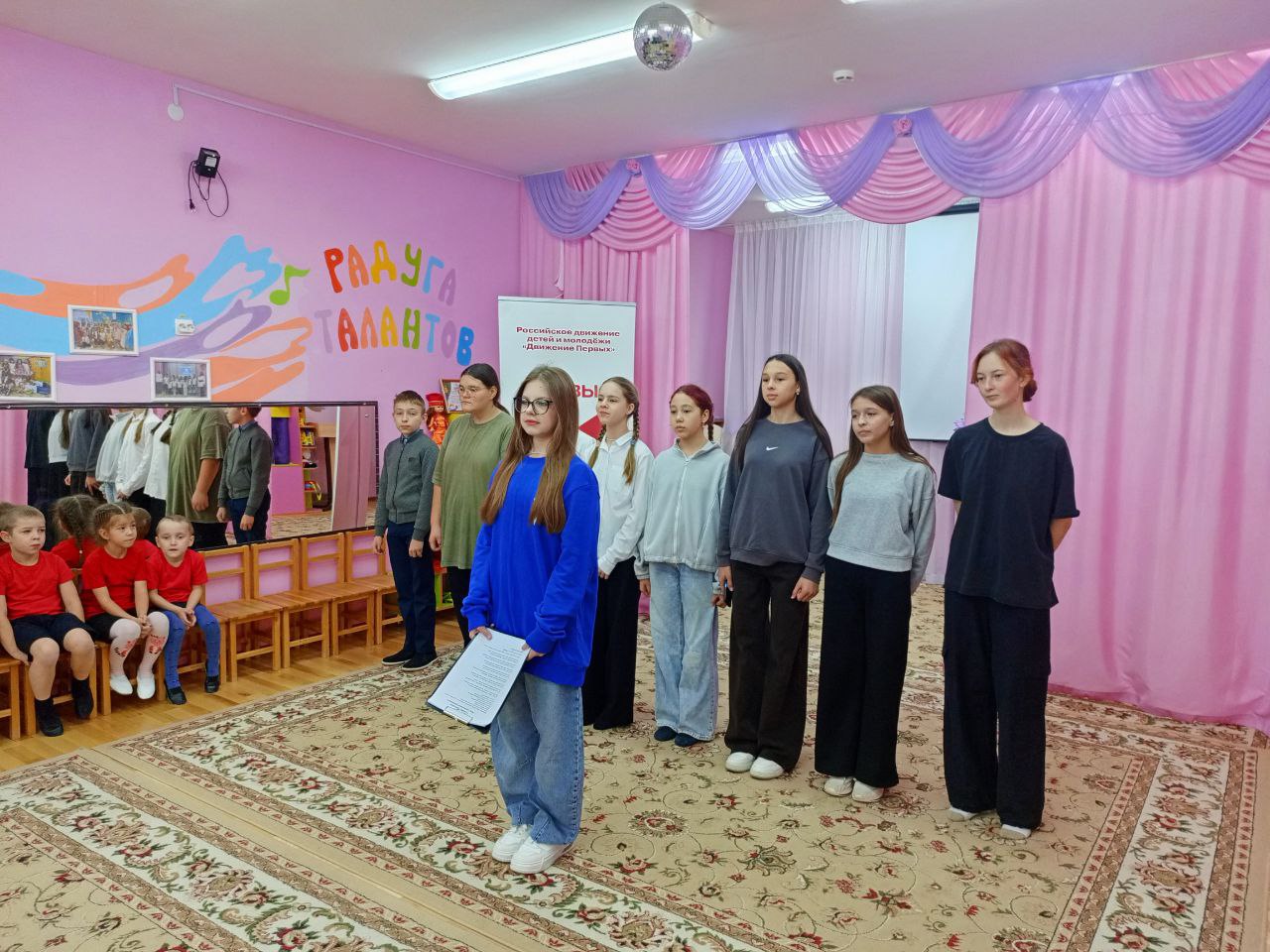 Советником по воспитанию совместно с активистами Движения Первых школы был организован и проведен концерт в Тимяшевском детском саду "Ласточка".