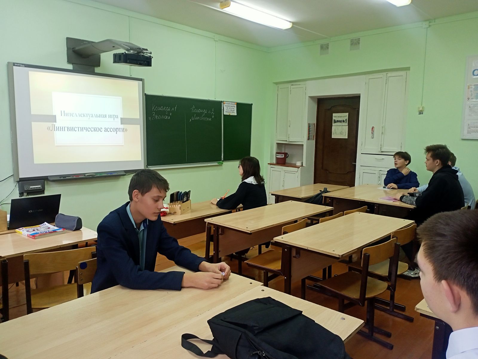 Опубликовано: 26.11.2025Согласно плану проведения Недели гуманитарных предметов 26 ноября в 9А классе прошла интеллектуальная игра по русскому языку «Лингвистическое ассорти». Цель мероприятия – развитие познавательного интереса к изучению русского языка, подготовка к ОГЭ. Команды «Знатоки» и «Лингвисты» соревновались в умении определять средства выразительности речи, подбирать стилистически нейтральные синонимы, в знании законов синтаксиса и пунктуации. Командам помогали болельщики, у которых были свои занимательные задания. Баллы, заработанные болельщиками, были зачислены в общий счет команд по желанию болельщиков. Команда «Знатоки» со значительным перевесом в баллах одержала победу. Атмосфера непринужденного общения, дух соревновательности передались всем участникам интеллектуальной игры.