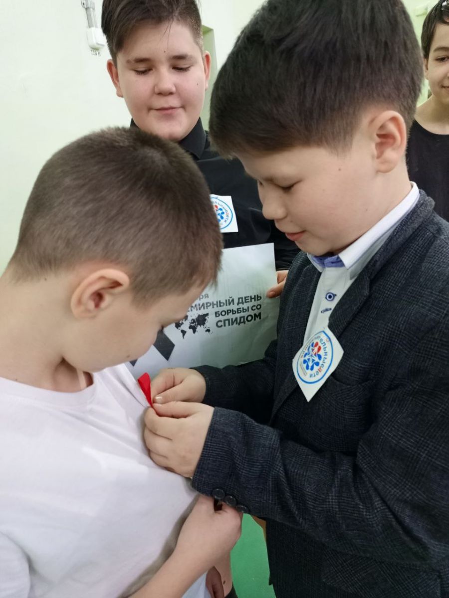 Опубликовано: 01.12.2025В нашей школе члены отряда "СМС дети" провели акцию " Красная лента" . Ребята расказали о способах сохранения здоровья и информировали о путях предачи ВИЧ инфекции.