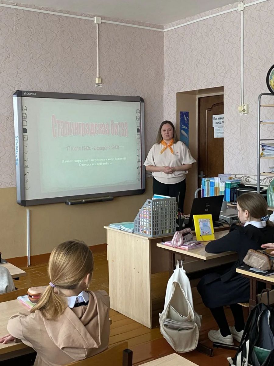 Советником по воспитанию был организован и проведен классный час для учащихся 4А класса. Ребята узнали об истории битвы и о храбрости советских воинов.