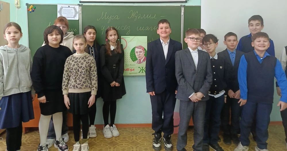 Сегодня, в рамках Недели родного языка, учащимися 5 классов была проведена викторина “Муса Джалиль – бессмертный поэт”. Учащиеся, разделившись на три команды, посмотрели видеозапись, посвященную жизни и творчеству поэта-героя Мусы Джалиля, выполнили вопросы и задания. Победителем стала команда” Карак песи".