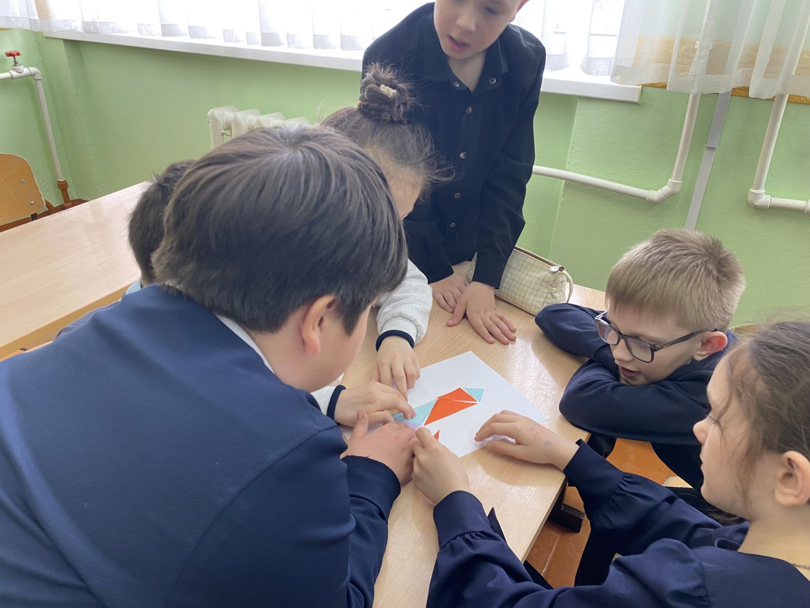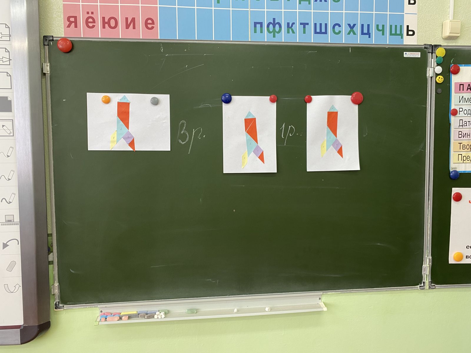 В завершение занятия все ребята собрали из нарезанных фигур «космическую ракету»., школьники почувствовали себя настоящими инженерами космических кораблей.